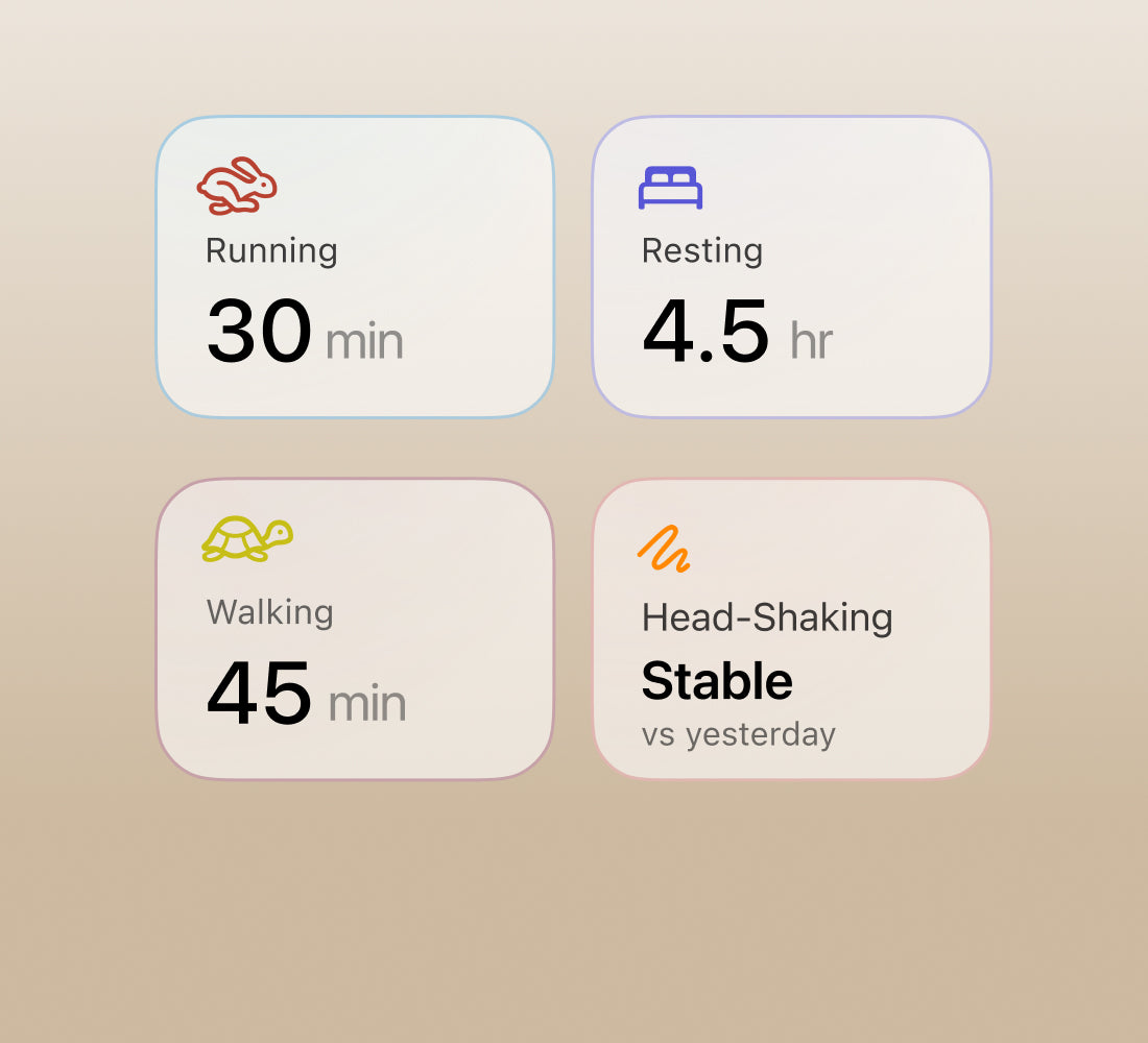 Stay on top of your dog's daily movement and spot shifts in walking or running routines before they become concerns.